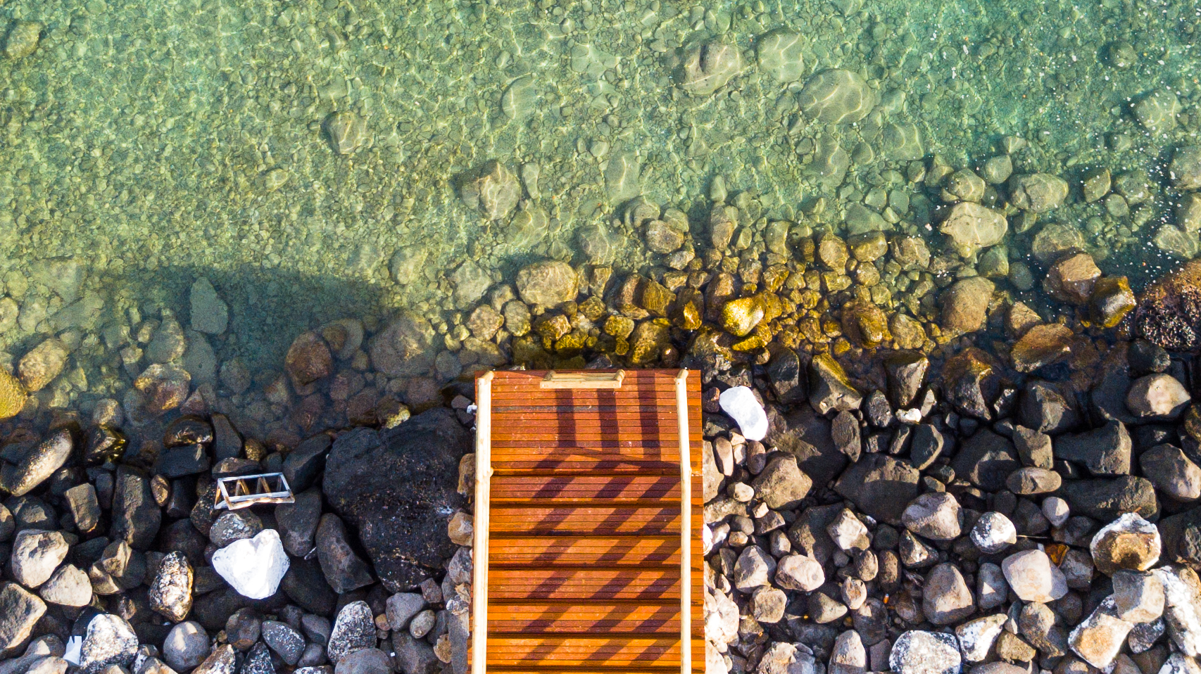 Morning light on a wooden pontoon in the Anelia resort.