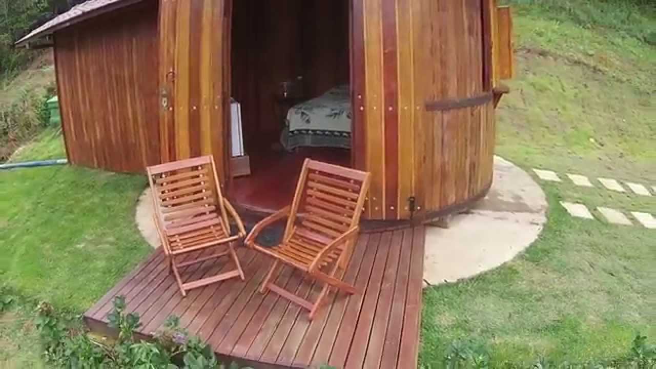 First hostel in Brazil to offer rooms made in an oak barrel.