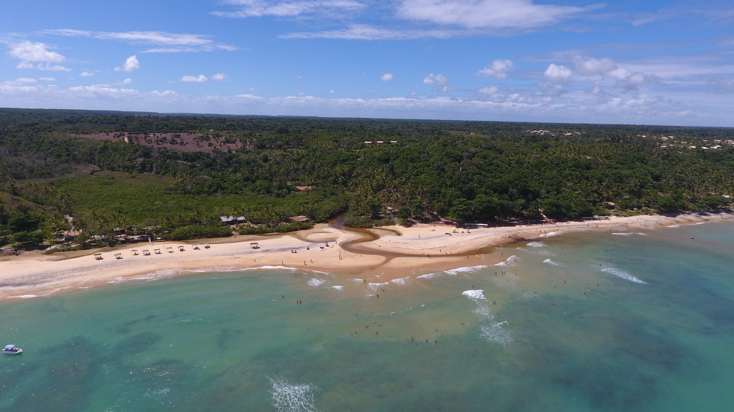 It is an exotic beach with charming inns, one of the most beautiful beaches in Brazil. The bars and restaurants on the beach offer drinks, fruit juices, snacks, seafood, typical Bahia dishes and other culinary sophistications in a quiet environment with an admirable decoration. On the night of the full moon the glitter of the sea turns an unforgettable landscape. The walks to nearby beaches (Setiquara, Praia do Outeiro, Jacumã) are recommended when the tide is low. They have several belvederes above the cliffs. From Mirror Beach you can take boat trips to the Rio dos Frades, Trancoso, Caraíva and Corumbau where you have coral reefs suitable for diving.