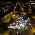 Foto nocturna de la Puerta de la Ciudad de Loja, Ecuador.
