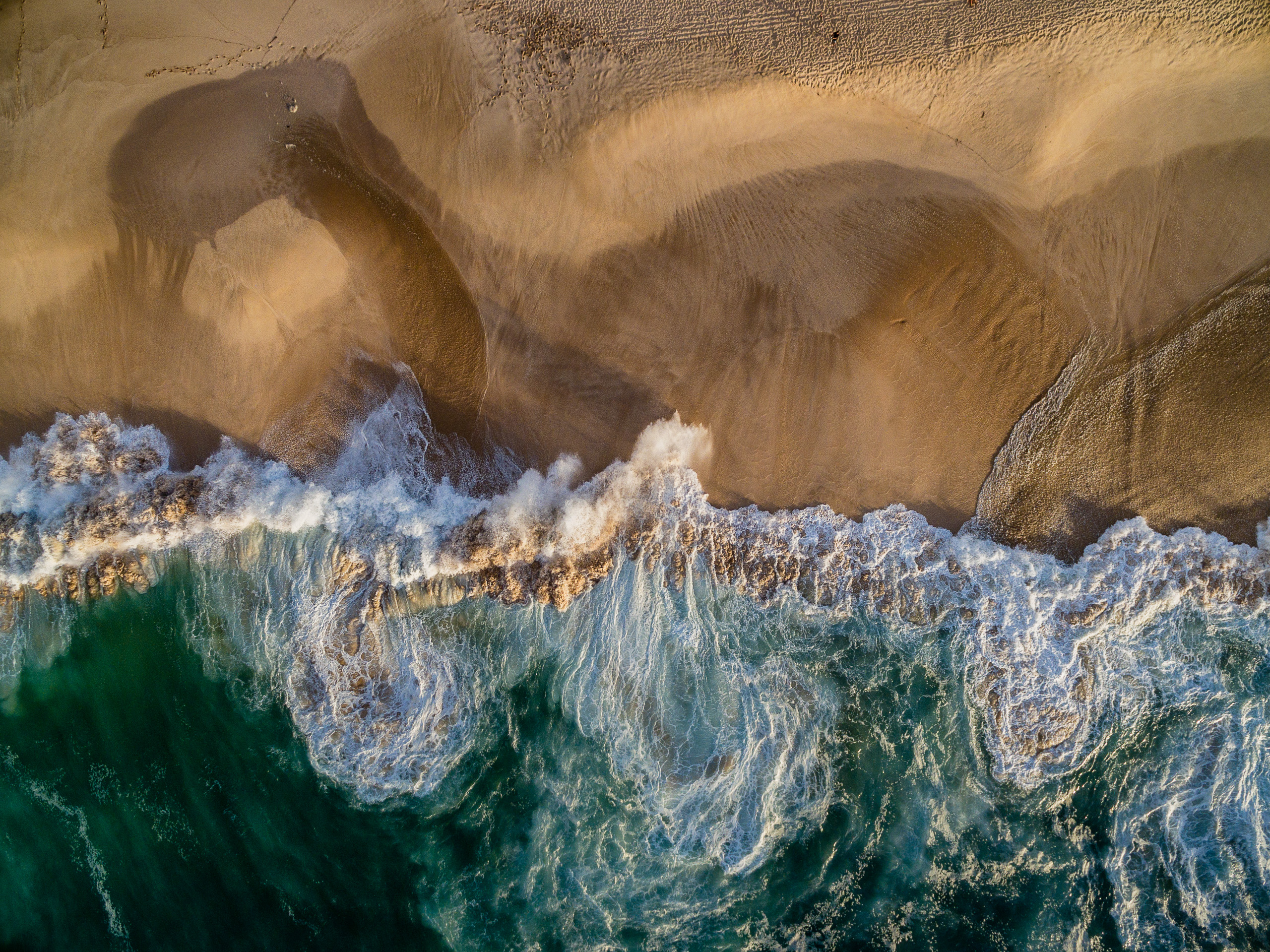 As the swell got stronger and the waves started to get bigger, I hovered over the sand at about 50m and took this shot of the shore dump in the last hour before sunset.