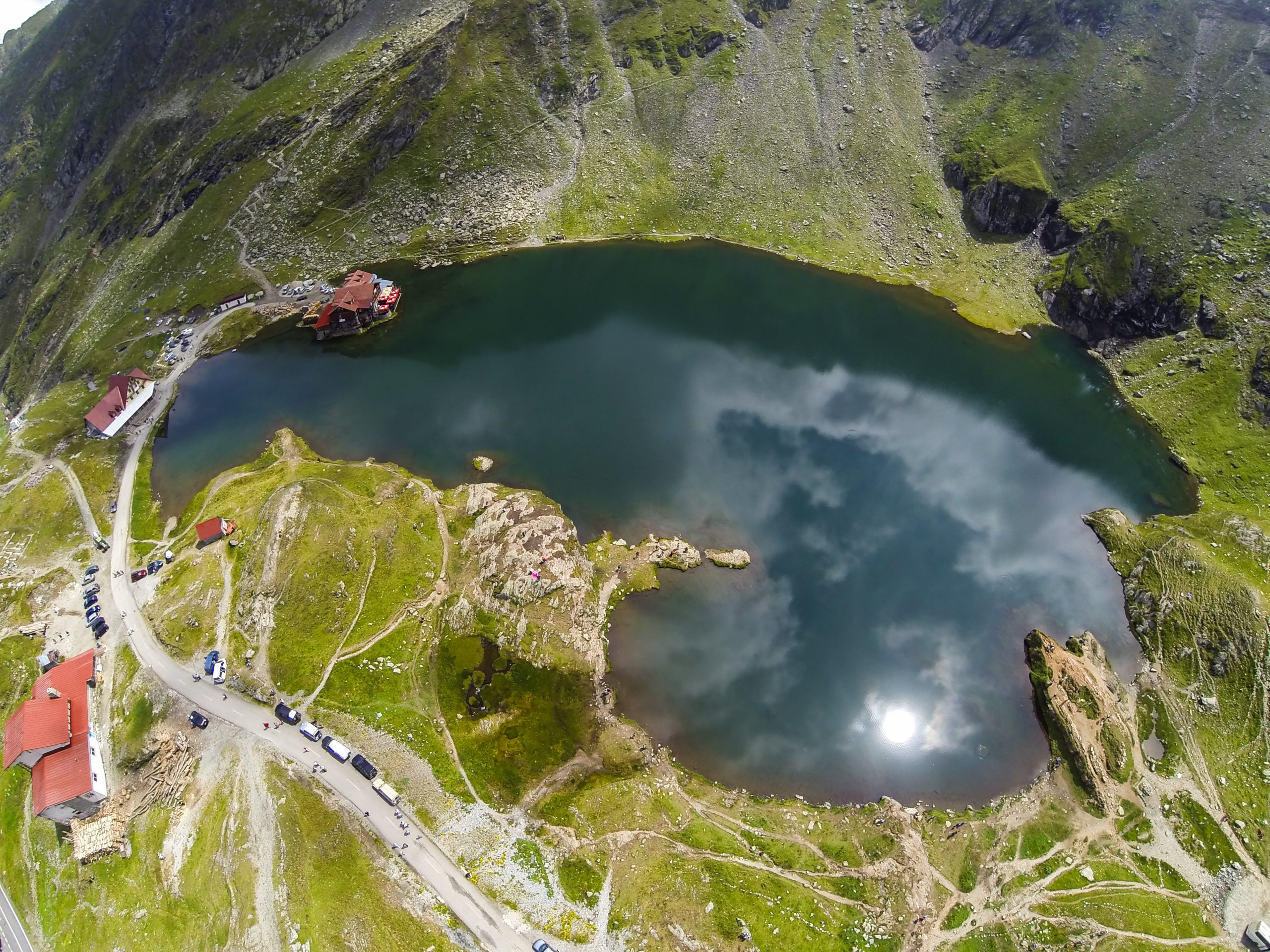“Bâlea Lake (Romanian: Lacul Bâlea or Bâlea Lac, pronounced [ˈbɨle̯a]) is a glacier lake situated at 2,034 m of altitude in the Făgăraș Mountains, in central Romania, in Sibiu County. There are two chalets opened all the year round, a meteorological station and a mountain rescue (Salvamont) station. It is accessible by car on the Transfăgărășan road during the summer, and the rest of the year by a cable car from the “Bâlea Cascadă” chalet.” -wikipedia