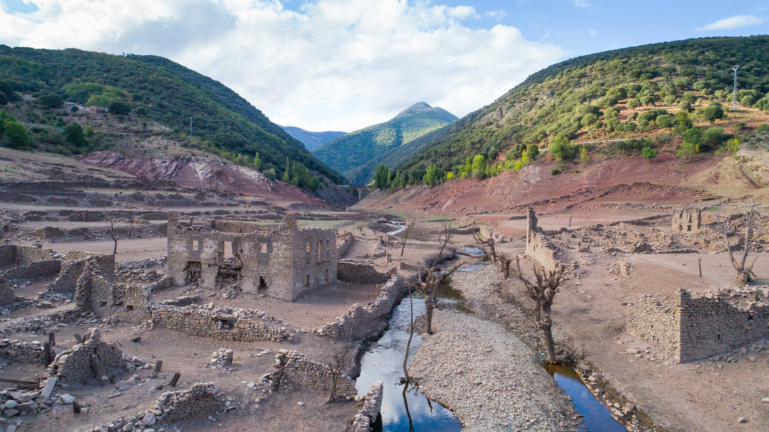 Ruinas al descubierto al secarse el embalse