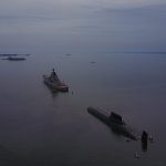 Biggest nuclear submarine in the world. Celebration of russian navy.. Kronshtadt city in Russia.