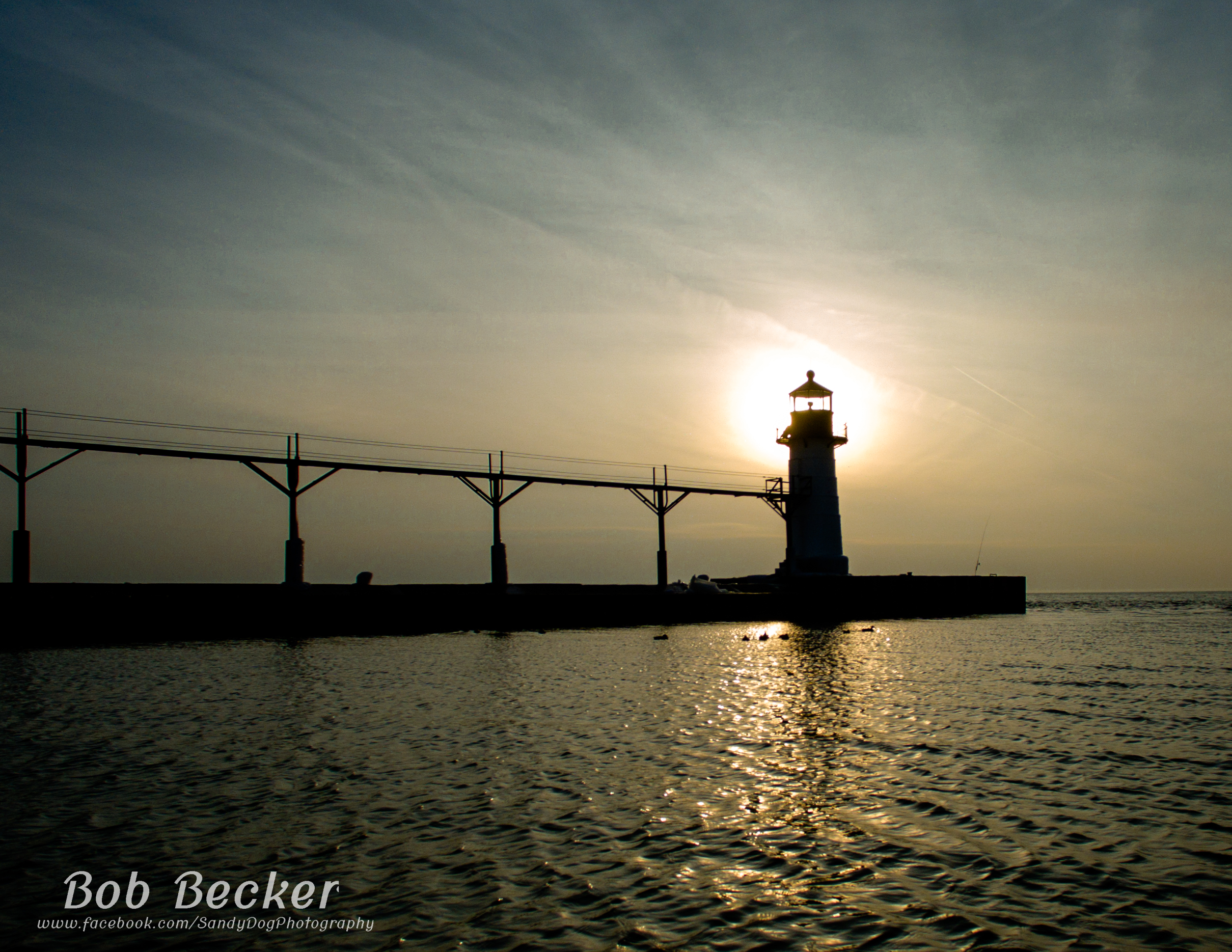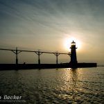 Winter flights at sunset in February, 2017 at the famous North Pier lighthouse in Saint Joseph, Michigan.