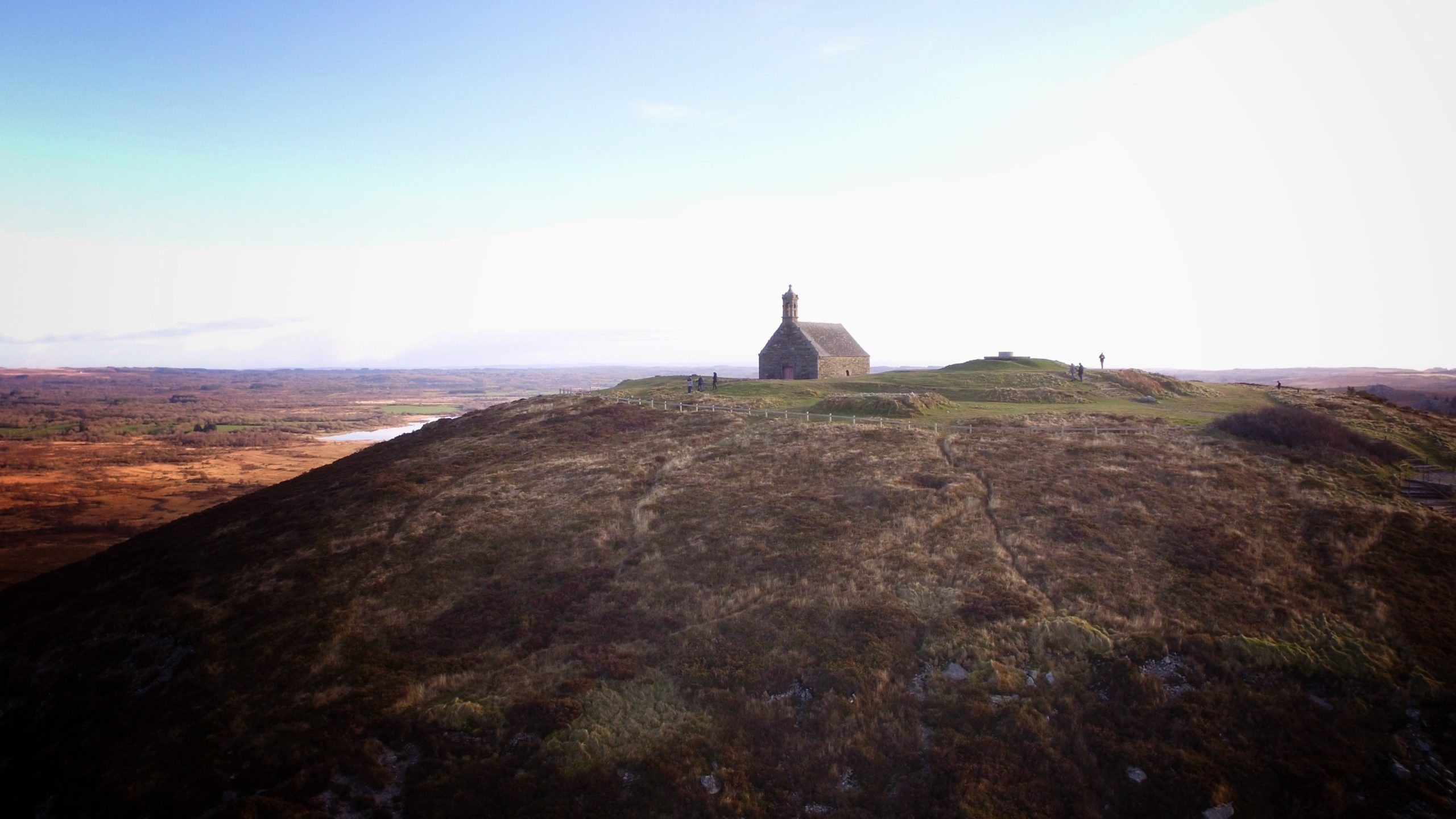 Saint Mickael mount and hill top chapel in Brittany. The mount is the second highest in Brittany at a height of 380m above sea level. The Arrees chain used to be as high as the Alps and remain a divider between North and South Brittany in France. It is usually a foggy, rainy and very windy place but likely not when I took this shot!