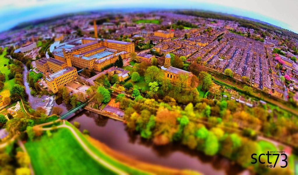 A view of Saltaire from Roberts Park.The village of Saltaire is a Victorian model village within the City of Bradford Metropolitan District, West Yorkshire, England, by the River Aire and the Leeds and Liverpool Canal. UNESCO has designated the village as a World Heritage Site, and it is an Anchor Point of the European Route of Industrial Heritage.
