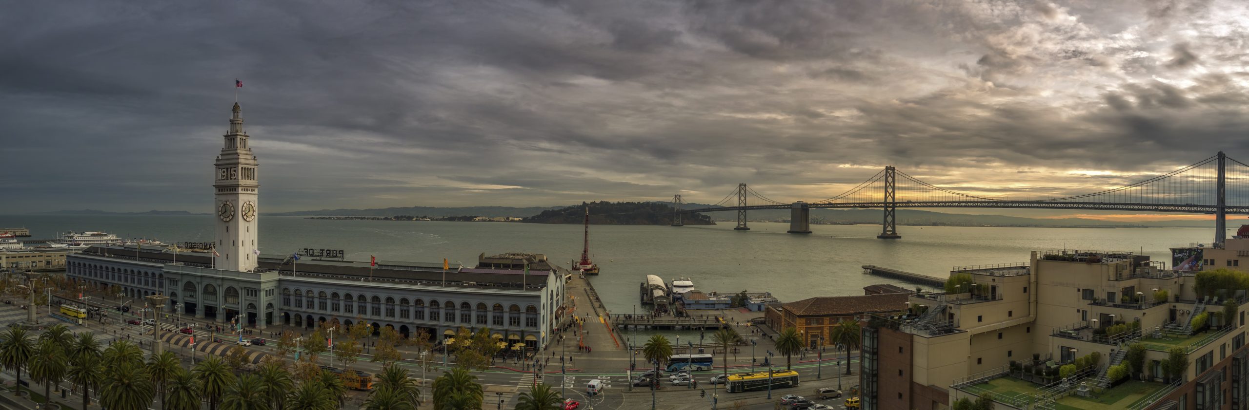 Sunrise panorama over the Embarcadero in San Francisco, shot with the DJI Inspire 1 Pro with the Zenmuse X5 camera and a 15mm (stock) lens.