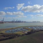 Felixstowe docks and the Orwell/Stour estuary from above Shotley Marina.