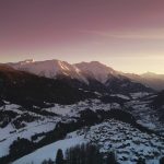 Sunset and Mountains over the Village of Bellwad Switzerland