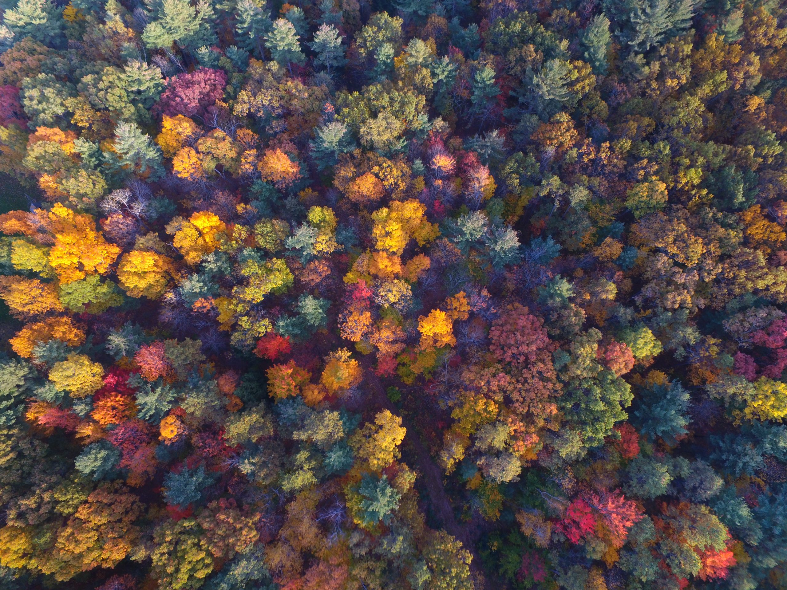 The setting sun’s light strikes the tops of the trees near my home in upstate NY.