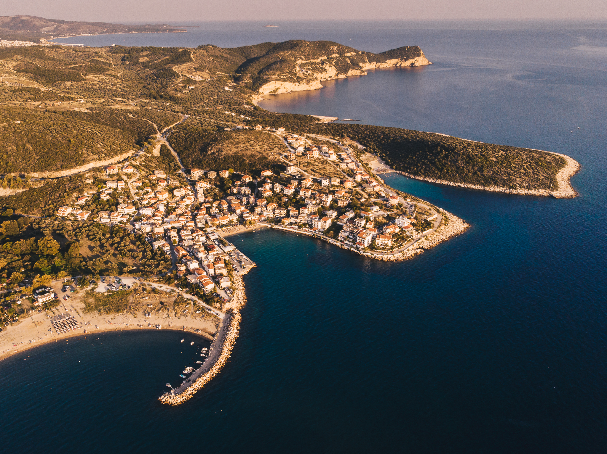 Sunset over Skala Marion bay, Thassos Island, Greece DJI Mavic Air