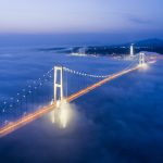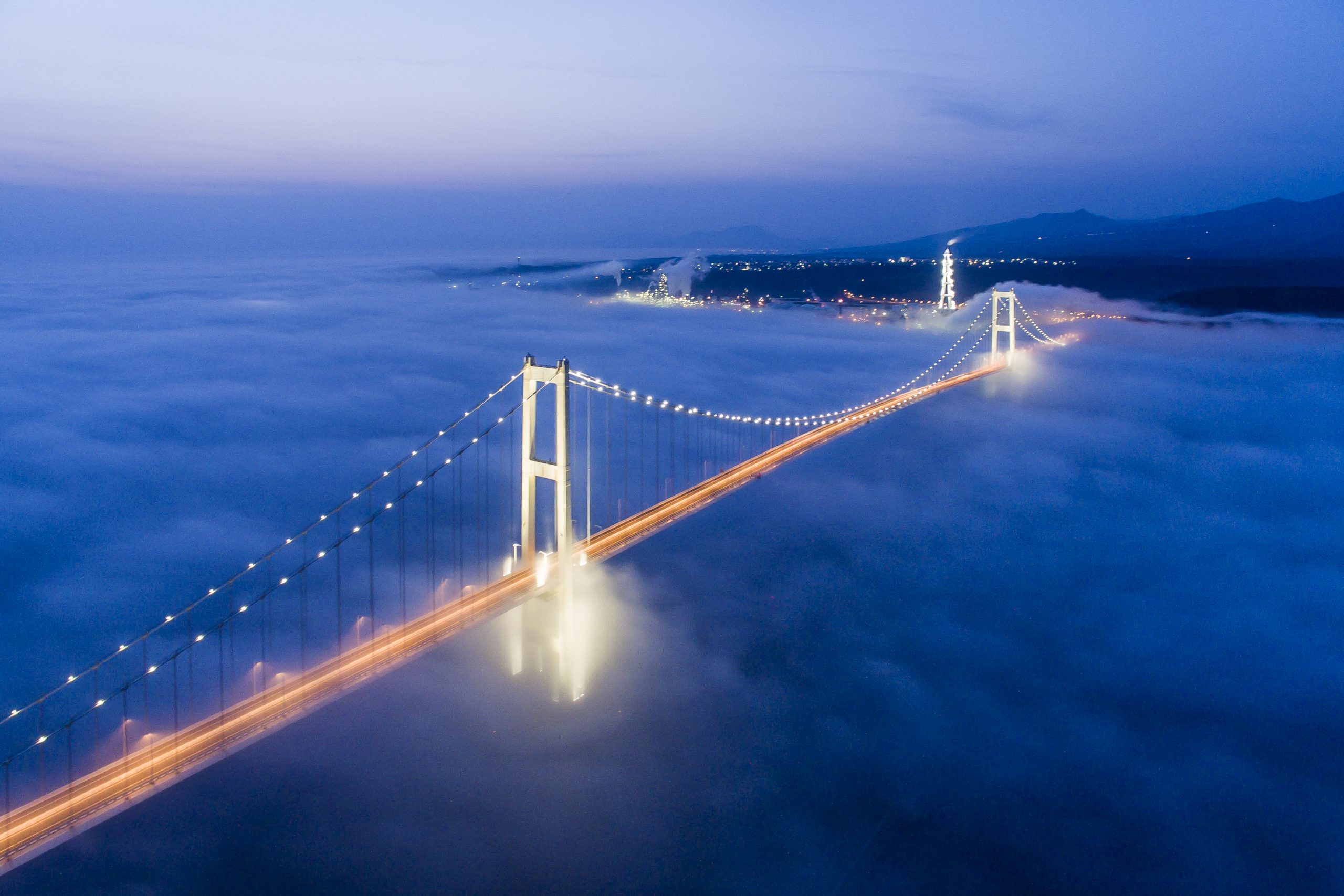 Foggy Swan Bridge in Muroran,Hokkaido,JAPAN. It is a very beautiful bridge.