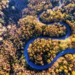 The windy road through an autumn forest