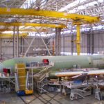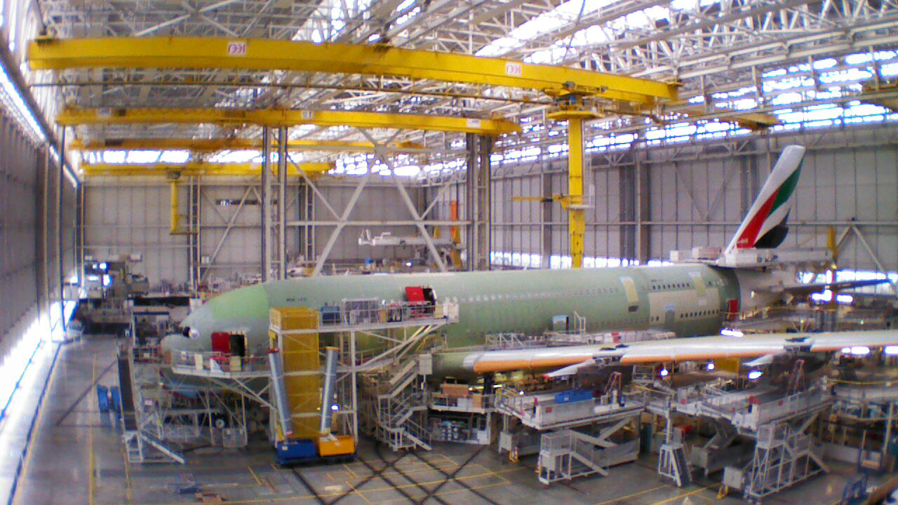 Parrot AR.Drone 2.0 flies over Airbus A380 Final Assembly Line.