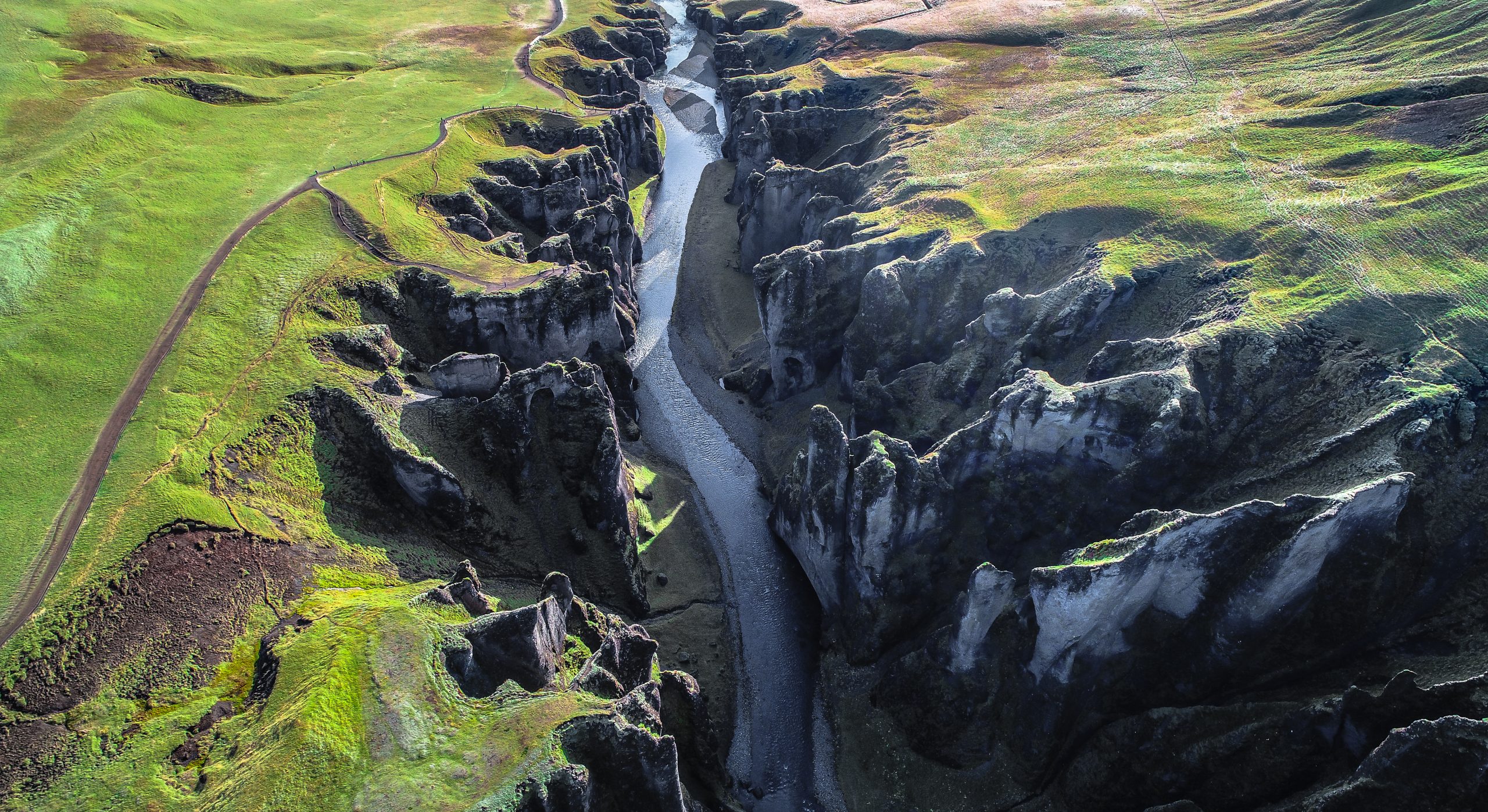 Try to pronounce Fjaðrárgljúfur. This darkly scenic canyon is cut off from river Fjärra two million years old! At the end of the ice age, nine thousand years ago, the glacier retreated, resulting in a magnificent valley with hard rocks.