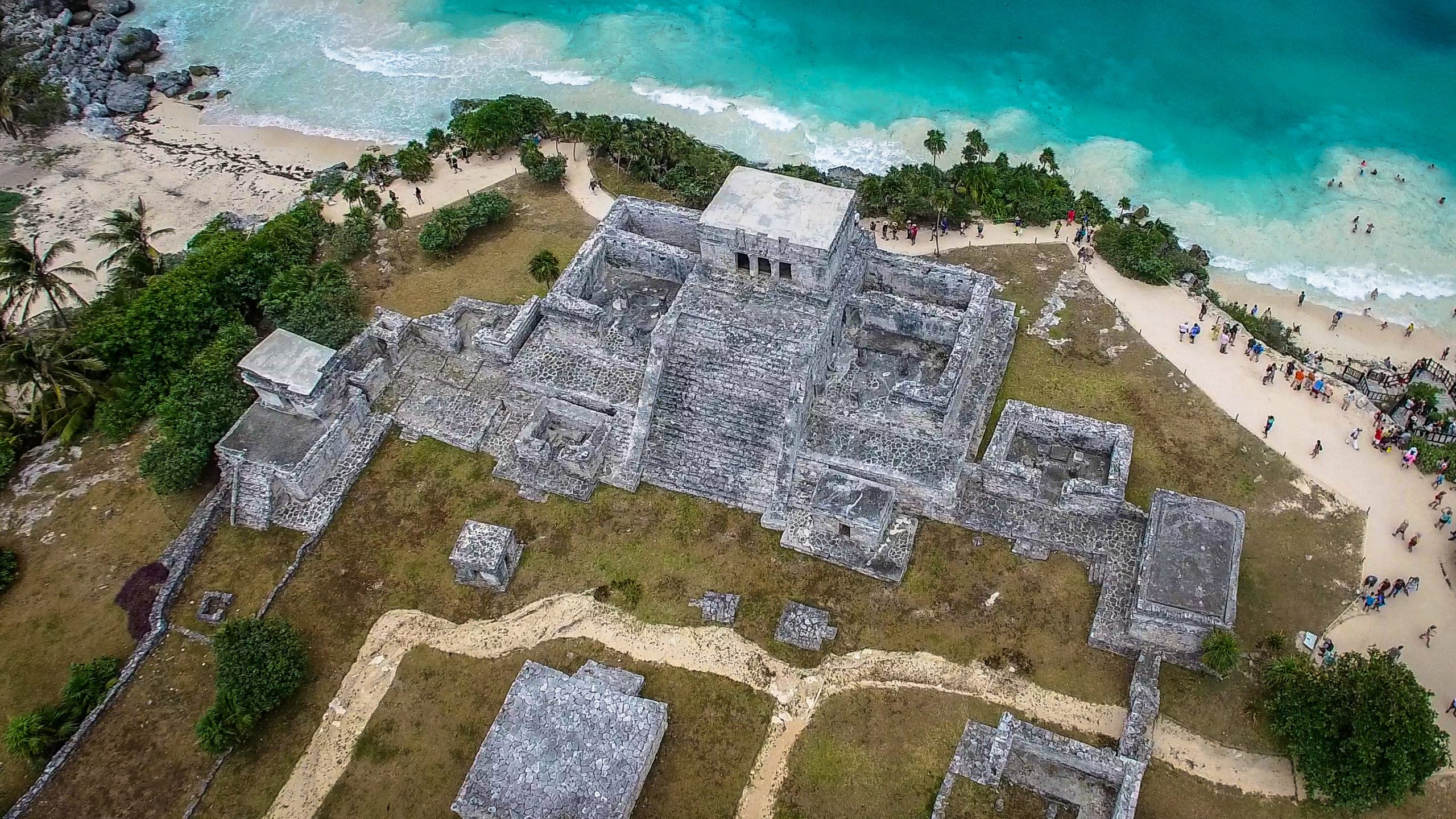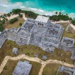 Tulum was an ancient Mayan fortress city that rose to power toward the end of the Classic period. The most iconic of its structures, the Castillo, is perched on the edge of a cliff overlooking the clear turquoise blue waters of the Caribbean