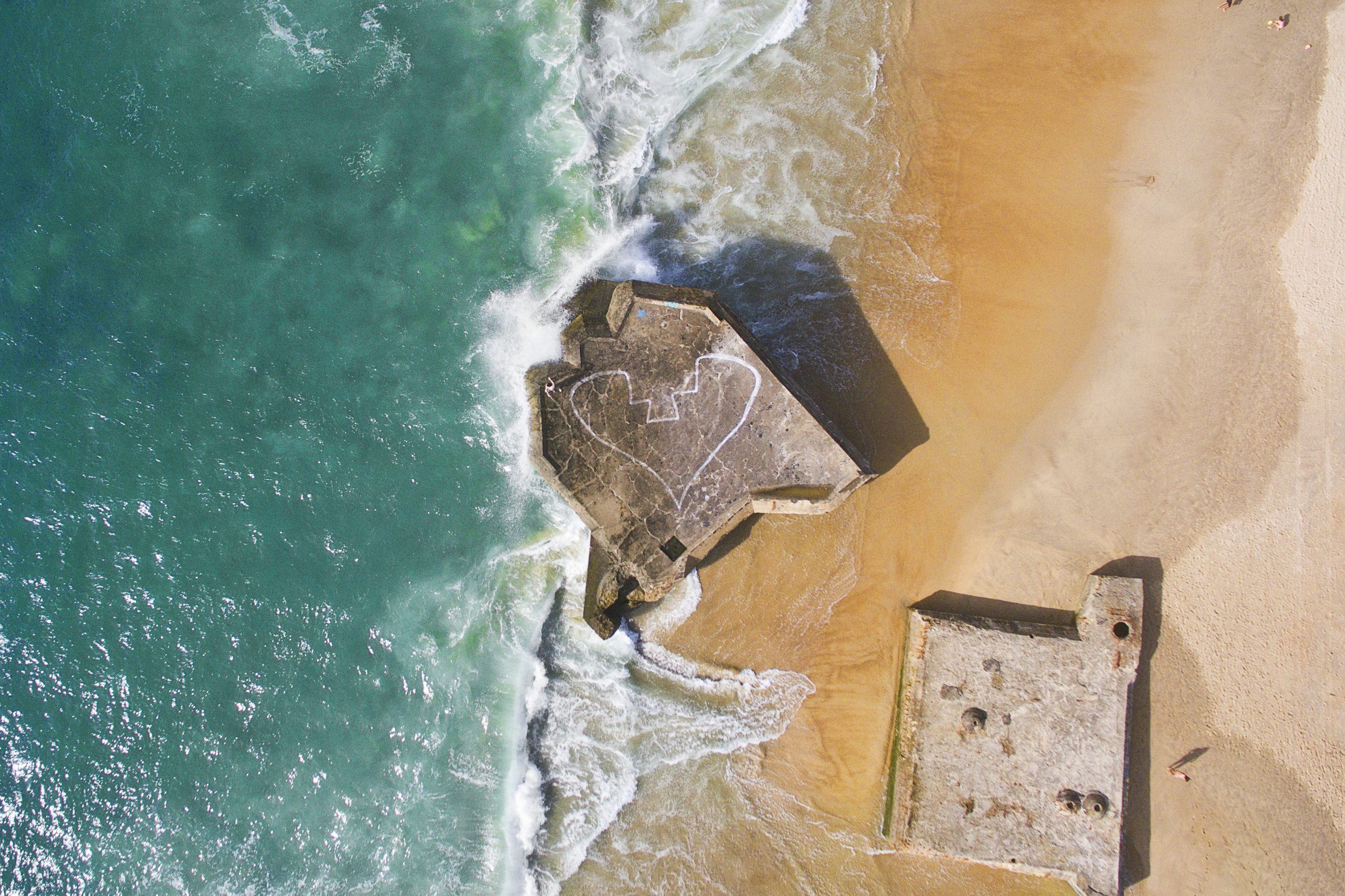 Survol des vestiges de la guerre avec un message vu d’en haut.