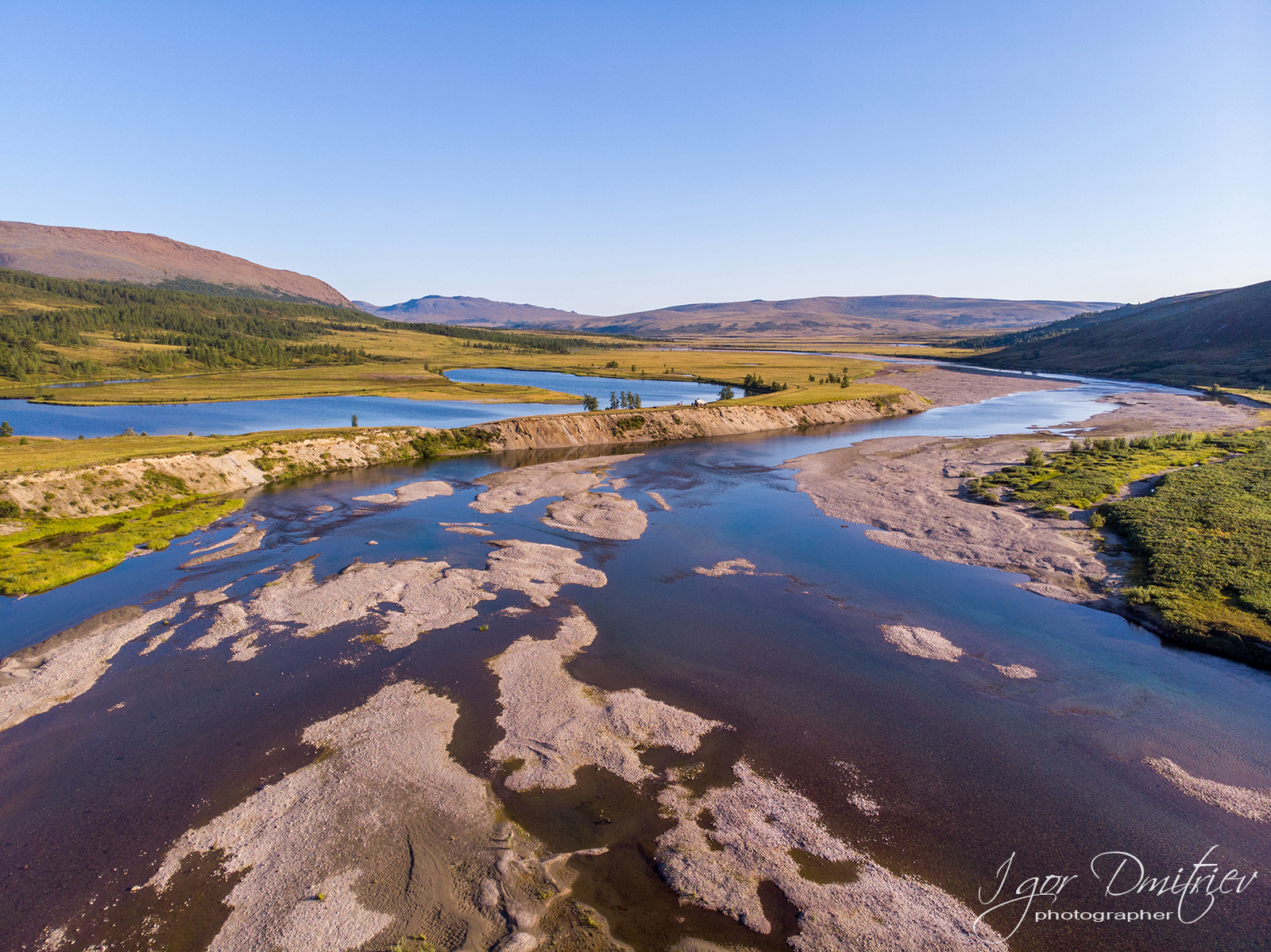 View of the valley of the Longyotgyegan river and the Domashnoye lake