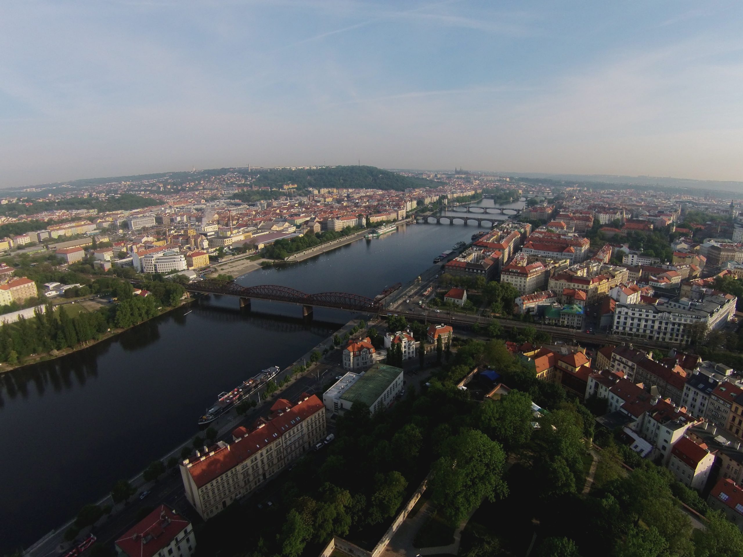 Shot from Vysehrad, facing Moldova River, Prague Castle Hill in the Background