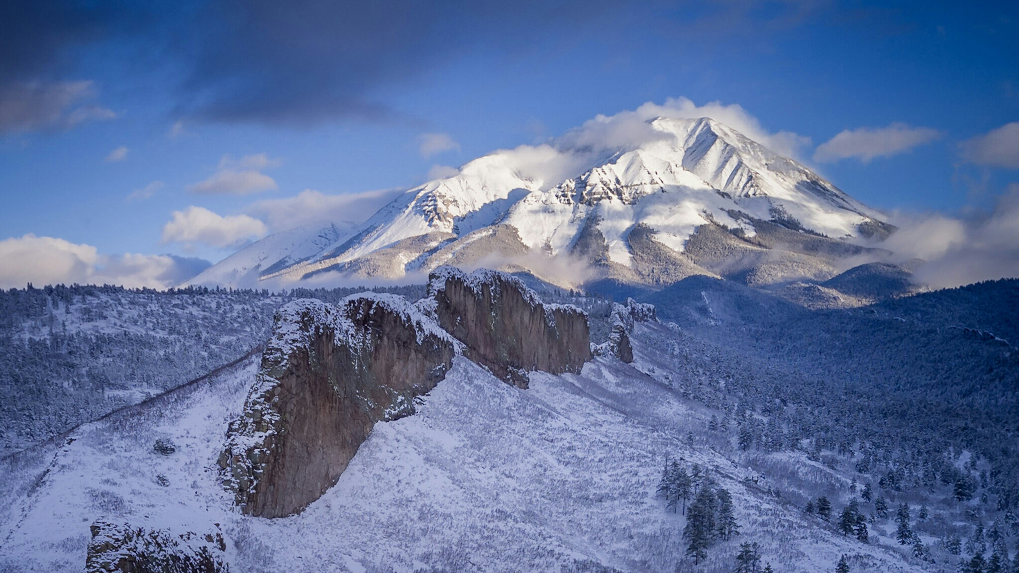 Clearing storm clouds on the West Spanish Peak just before sunset, March 2017.