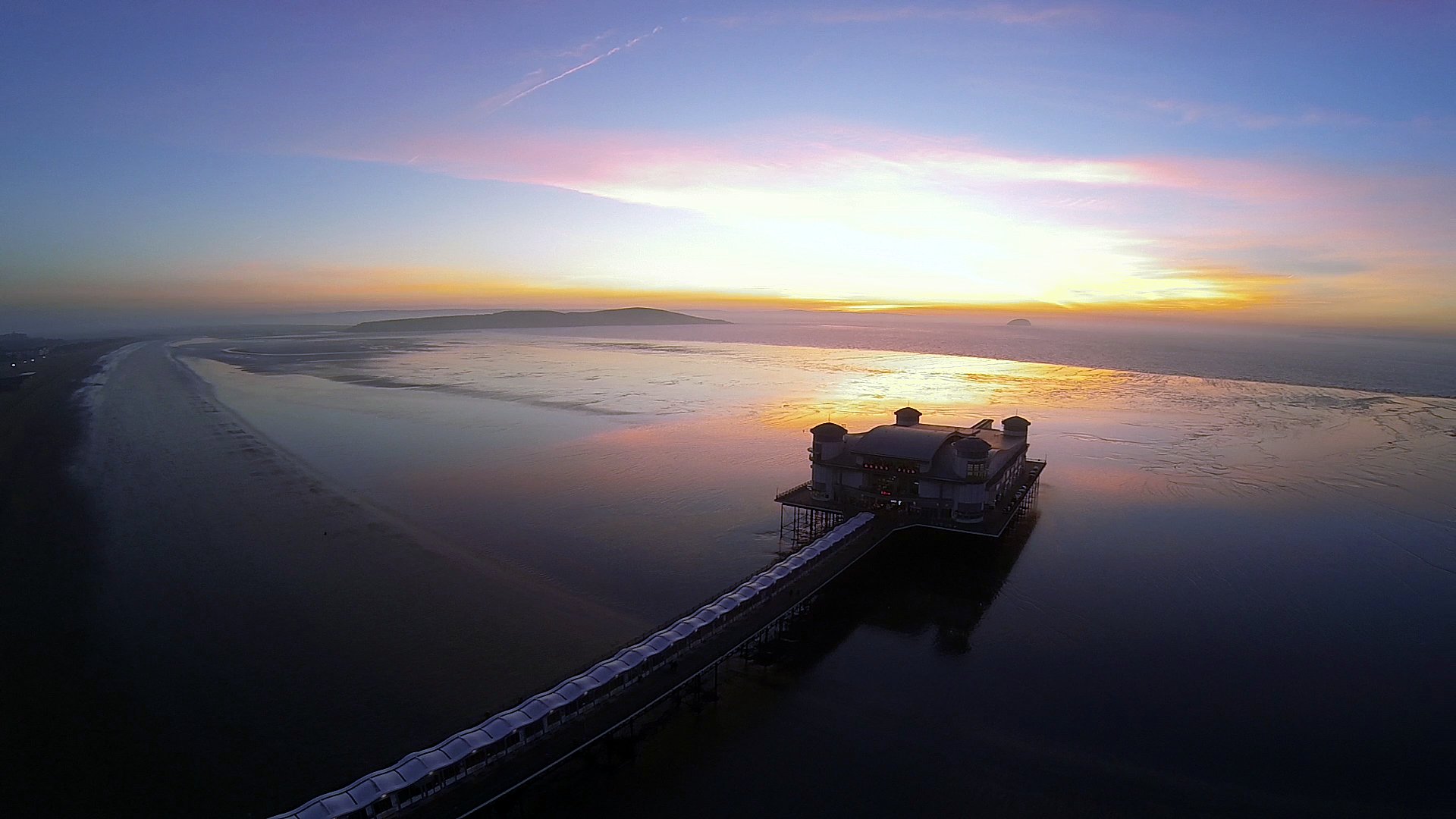 Flying around the pier before a Fireworks display