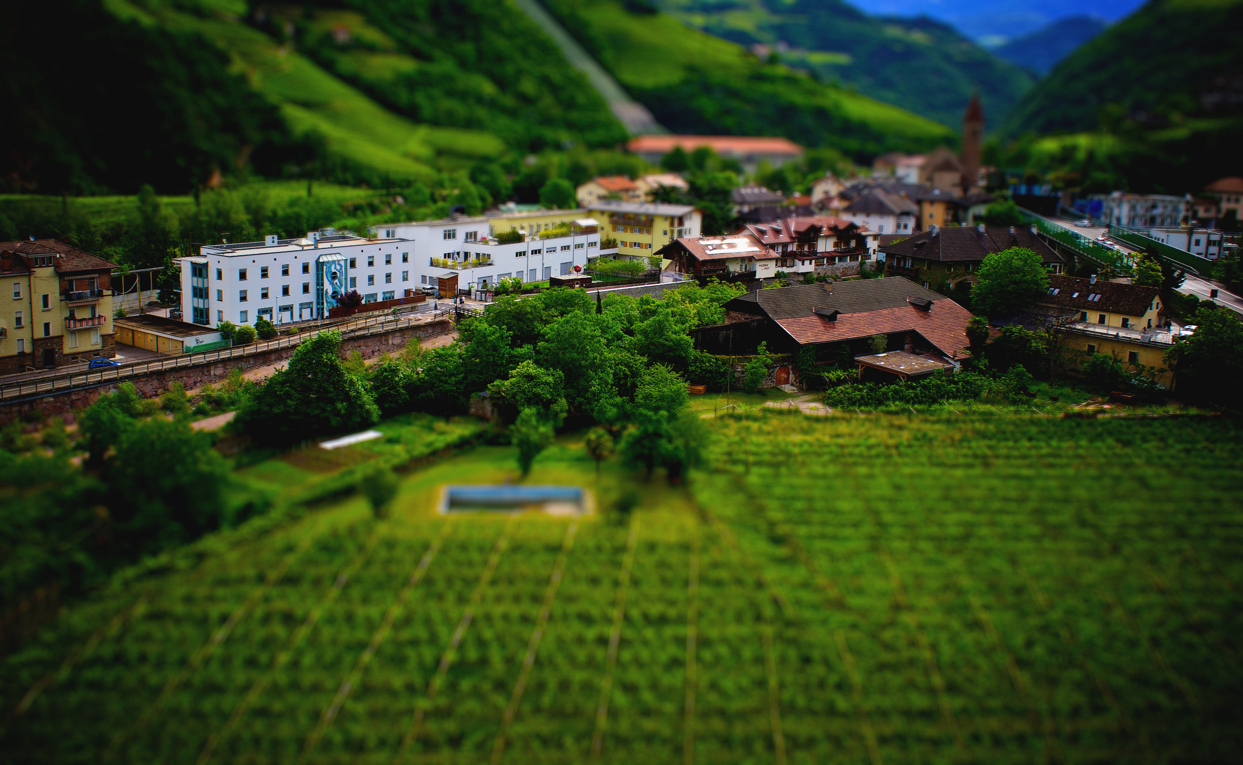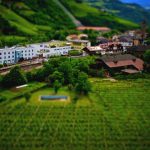 This is an aerial photograph from the wine producer Unterganzner. The image was modified in retrospect Tilt Shift.